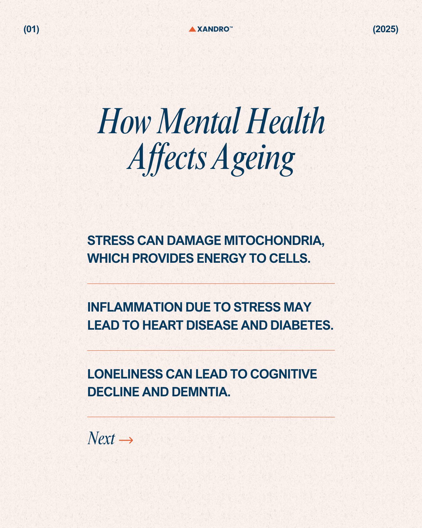 - Inflammaging: Persistent low-grade inflammation due to stress speeding up ageing. This contributes to conditions like heart disease, diabetes and dementia.
