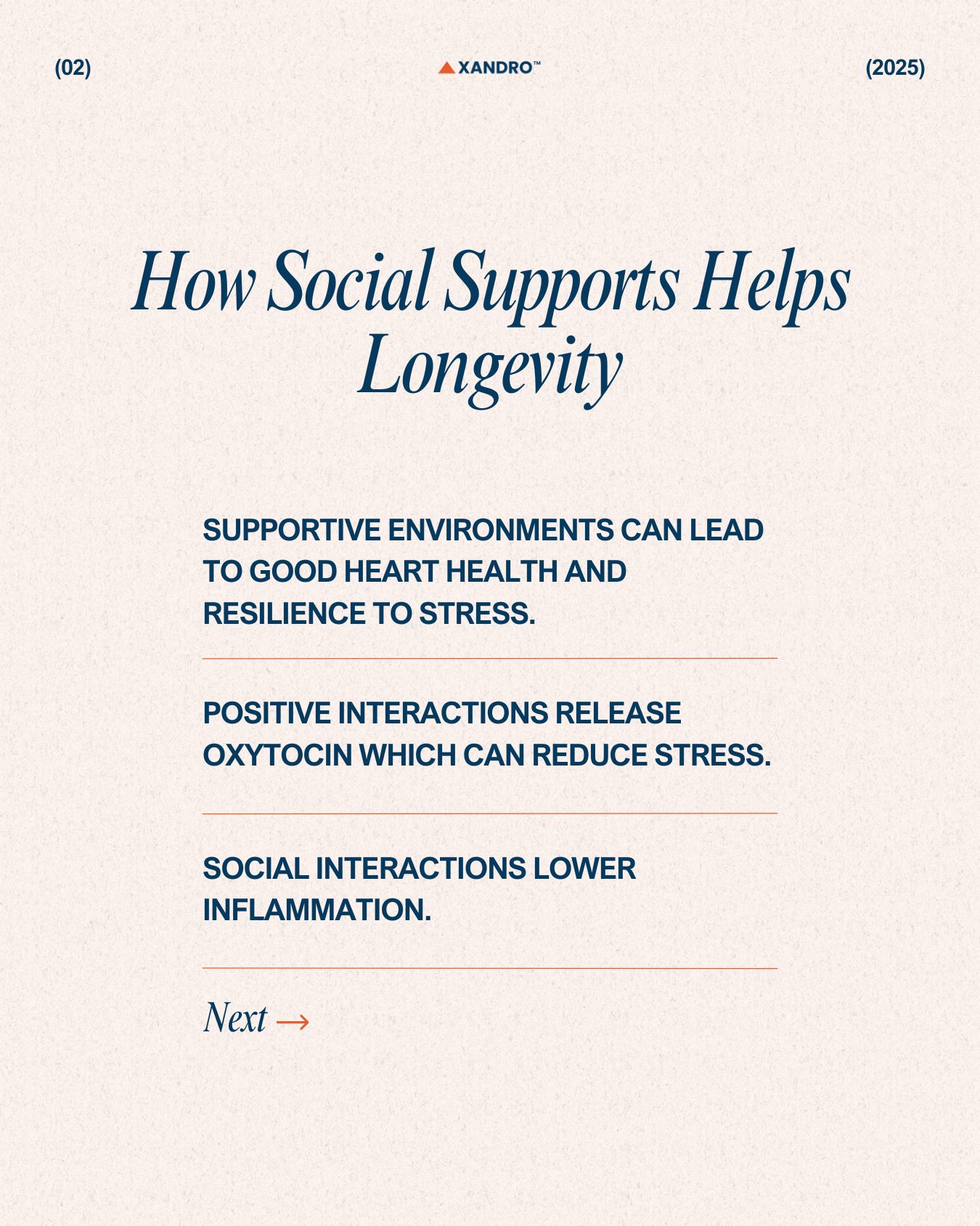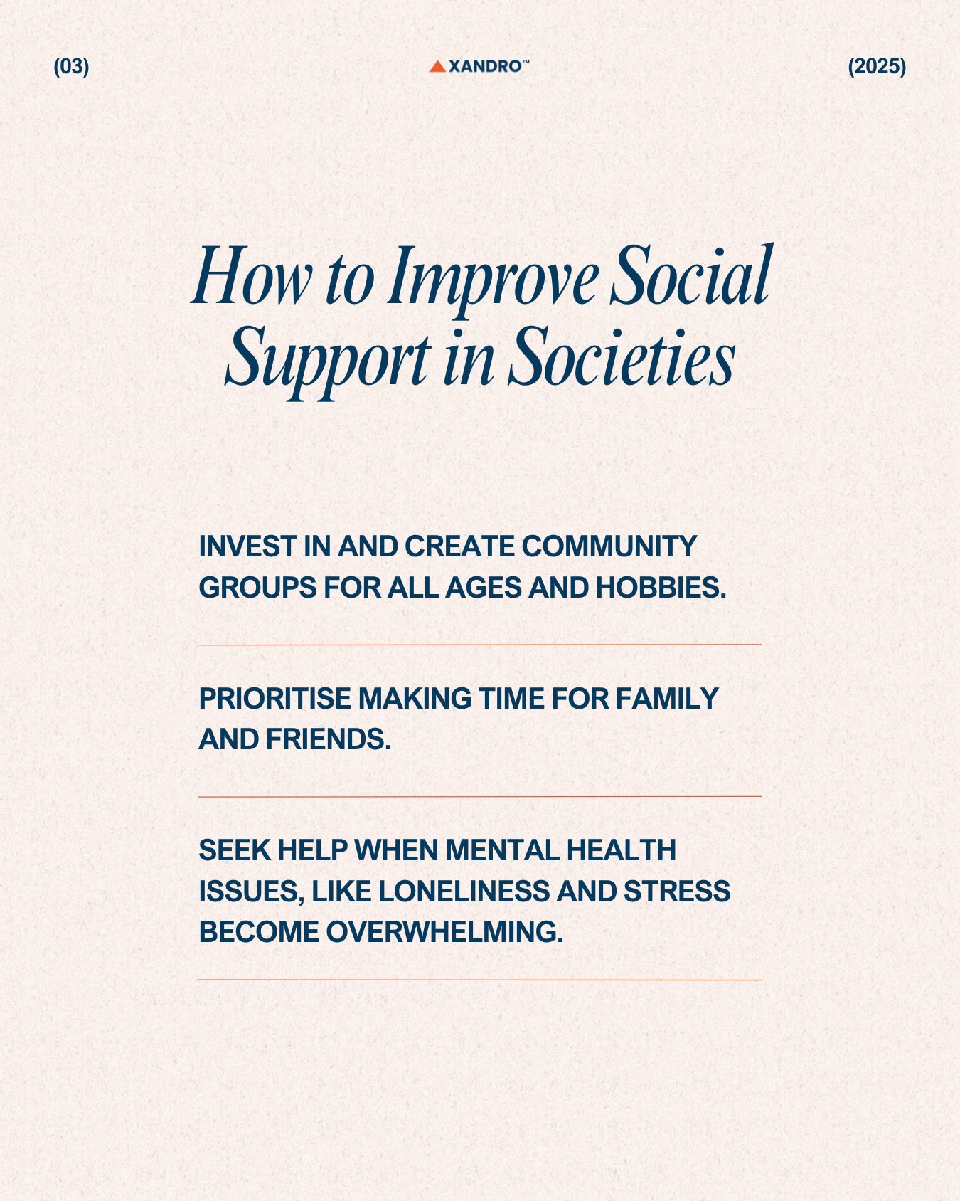 This shows the importance of creating social support not just for individuals but also within communities and societies. This involves improving emotional longevity by addressing loneliness, which is now a growing epidemic, particularly among older adults in developed countries. Large-scale interventions can include promoting social activities, creating inclusive communities and even using technology like online networks to build meaningful connections.